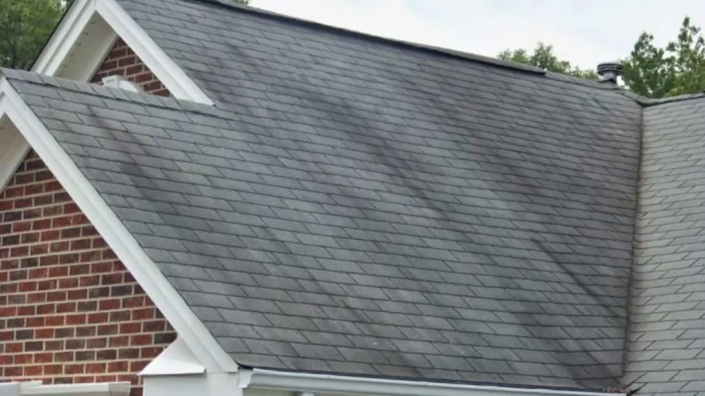 So, how can algae, an aquatic plant, grow and thrive without being submerged in water? Great question! The algae that grow on a roof is called gloeocapsa magma, an aquatic plant/bacteria that can rapidly spread in humid conditions. They’re able to survive without being submerged in water because they feed on the moisture found on roofs in humid conditions. So even if we haven’t had rain in a while, roofs in Lynchburg, Charlottesville, and surrounding cities are humid enough for roof algae to grow and thrive.